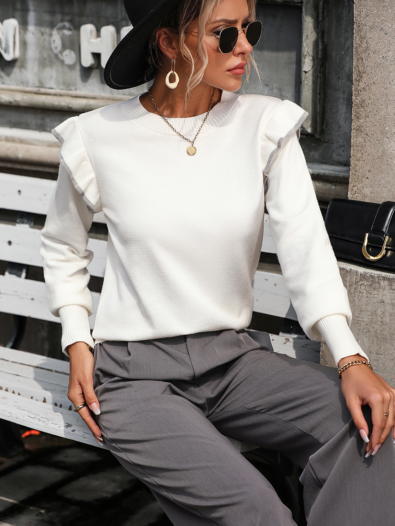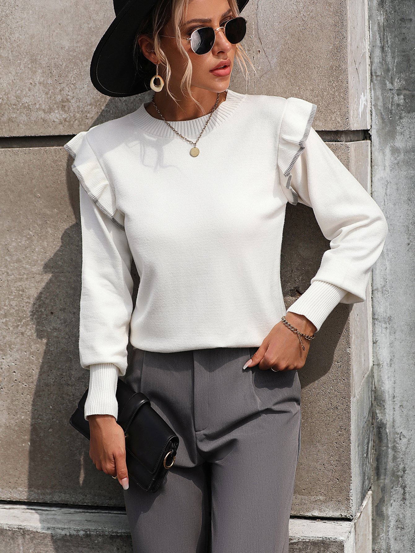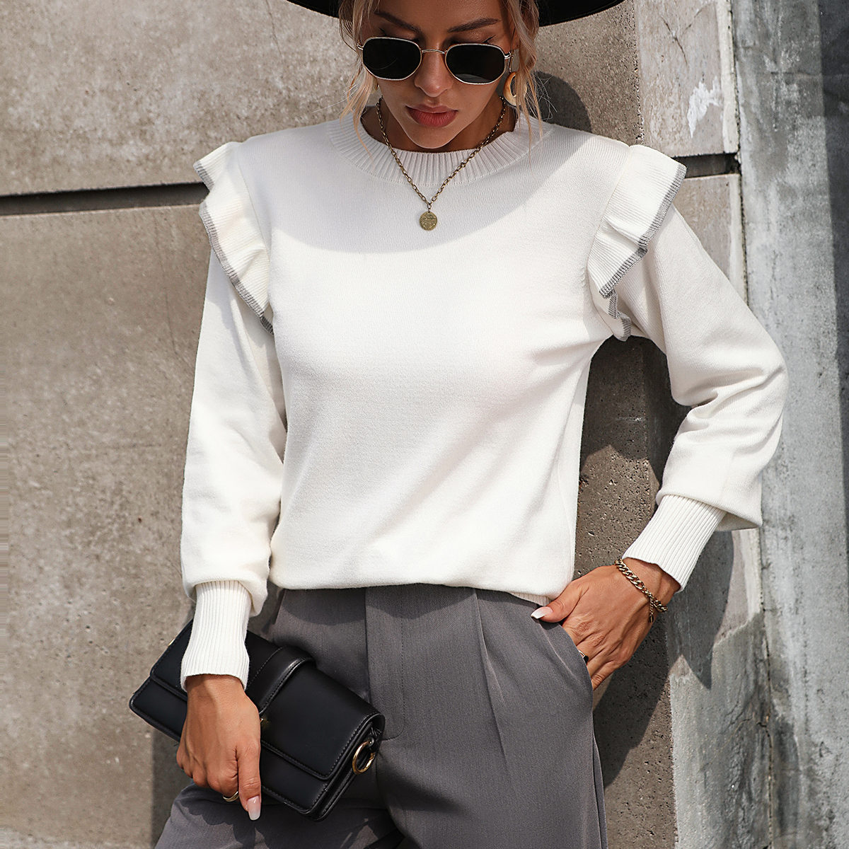 Ruffled knitted sweater loose solid color round neck pullover fashionable sweater for women Ruffled knitted sweater loose solid color round neck pullover fashionable sweater for women Ruffled knitted sweater loose solid color round neck pullover fashionable sweater for women Ruffled knitted sweater loose solid color round neck pullover fashionable sweater for women Ruffled knitted sweater loose solid color round neck pullover fashionable sweater for women
